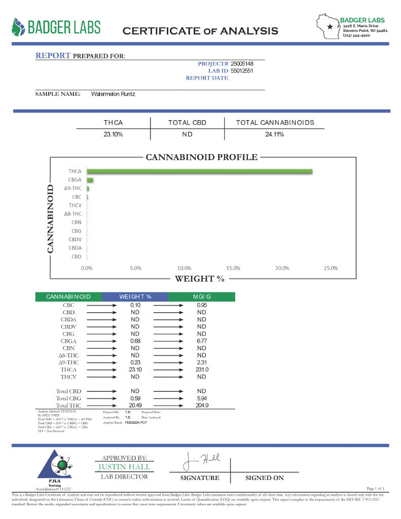 Watermelon Runtz is an indica-dominant hybrid weed strain made by crossing Watermelon Zkittlez with Runtz. It’s got bold purple buds and a nose to match. The effects of this strain are believed to be intensely euphoric, a little sleepy, and tingly. Watermelon Runtz is believed to be 22% THC. The dominant terpenes in this strain are caryophyllene, limonene, and humulene, which form a gassy, fruit salad nose with watermelon notes, and a sharp, earthy aftertaste. People say they often buy this strain during episodes of pain, nausea, and arthritis. The original breeder of Watermelon Runtz is Silent Seeds.