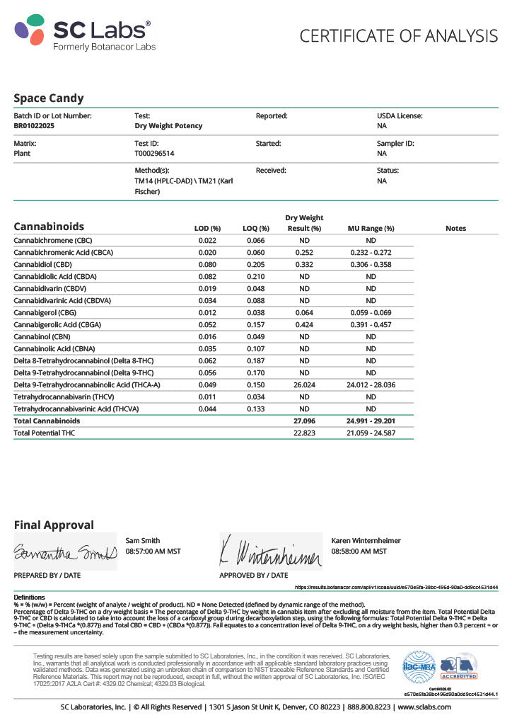 Space Candy originally comes from Heroes of the Farm, who bred this hybrid strain by crossing Cherry Space Queen and Cotton Candy. The genetic combination is as decadent as it sounds, as Space Candy inherits a unique flavor profile of candied apples and sweet cherry, counterbalanced by more tame earthy notes. Its effects may take some time to taper in, but once they do, expect to experience the mind-body balance of invigorating euphoria and deep physical.